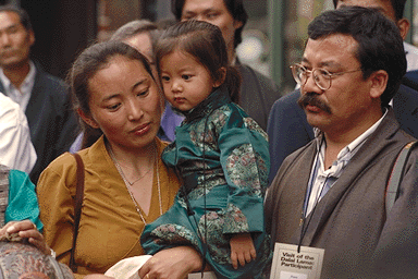 Pema Rabgay: Pema came to America in 1981, long before the resettlement program began. He met his wife, Tashi Lhamo, in 1992 and married the following year. Now they have a young daughter named Sonam. On raising children in America, Pema says "I think first generation immigrants have the most difficult time raising children. The parents are at work and the children are at school, and the children see their parents doing housework and they lose their parents as role models because the children want to be successful and they choose someone like Michael Jackson as their role model. I think what our daughter will get from us, her parents, are her moral values."