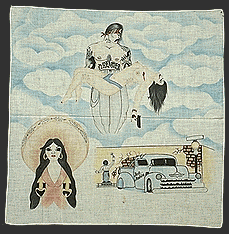 "Dreamer" Colored pencil and inks on handkerchief Artist unknown Date unknown California Prison System Collection of Rudy Padilla, the Hourglass Museum
