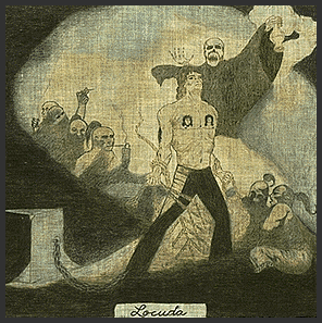 DETAIL - "Locuda" / "Craziness" Inks and unknown pigments on handkerchief Artist unknown c. 1950s Santa Fe, New Mexico Collection of Rudy Padilla, the Hourglass Museum